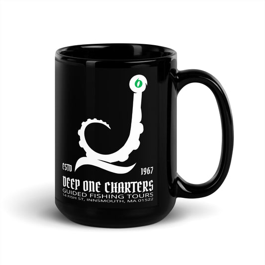 Innsmouth Fishing Tours Cthulhu Lovecraft Black Glossy Mug