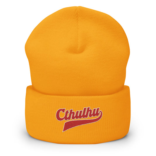 Cthulhu League Script – Vintage Eldritch Lettering Cuffed Beanie