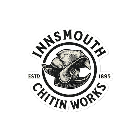 Innsmouth Chitin Works – Vintage Monochrome Logo Bubble-free stickers