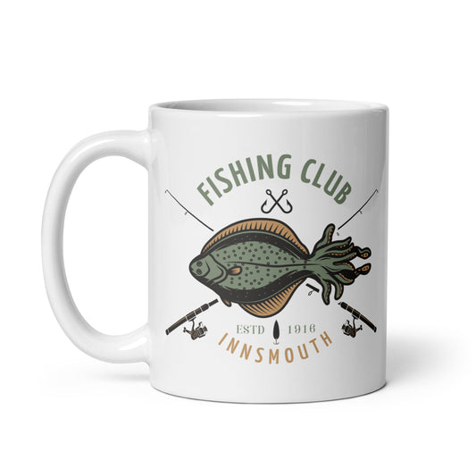 Innsmouth Fishing Club Lovecraft White glossy mug