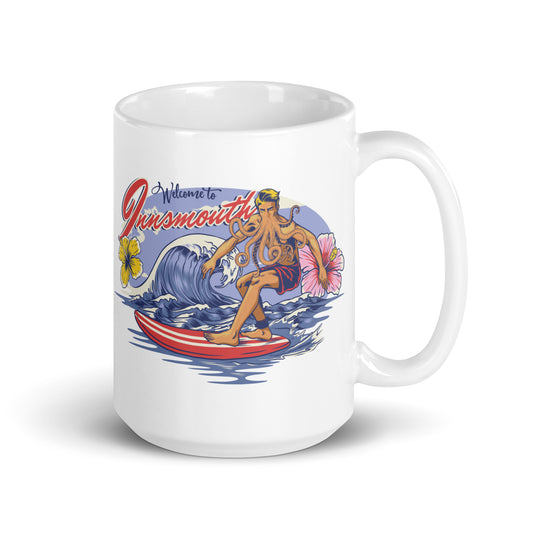 Innsmouth Surfing Lovecraft White glossy mug