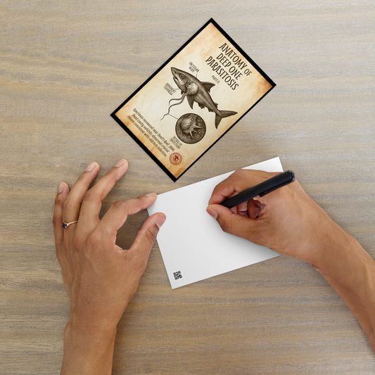Postkarten sind eine Sammlung, die ferne Echos aus vergessenen Reichen und unvorstellbaren Orten einfängt. Mit Lovecraftscher Ästhetik und kryptischen Designs wirkt jede Karte wie eine Botschaft vom Rand der Realität. Senden Sie eine Nachricht – oder eine Warnung – von jenseits der Sterne.