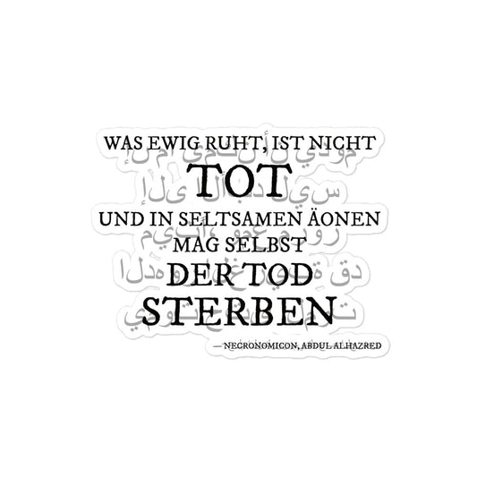 „Nicht tot ist...“ – Das Necronomicon-Zitat in Arabisch und Deutsch Blasenfreie Aufkleber