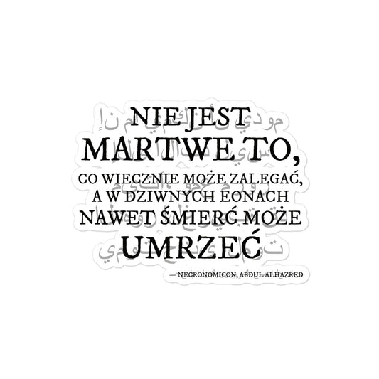 „Nie jest martwe…“ – Cytat z Necronomiconu po arabsku i polsku Naklejki bez pęcherzyków powietrza