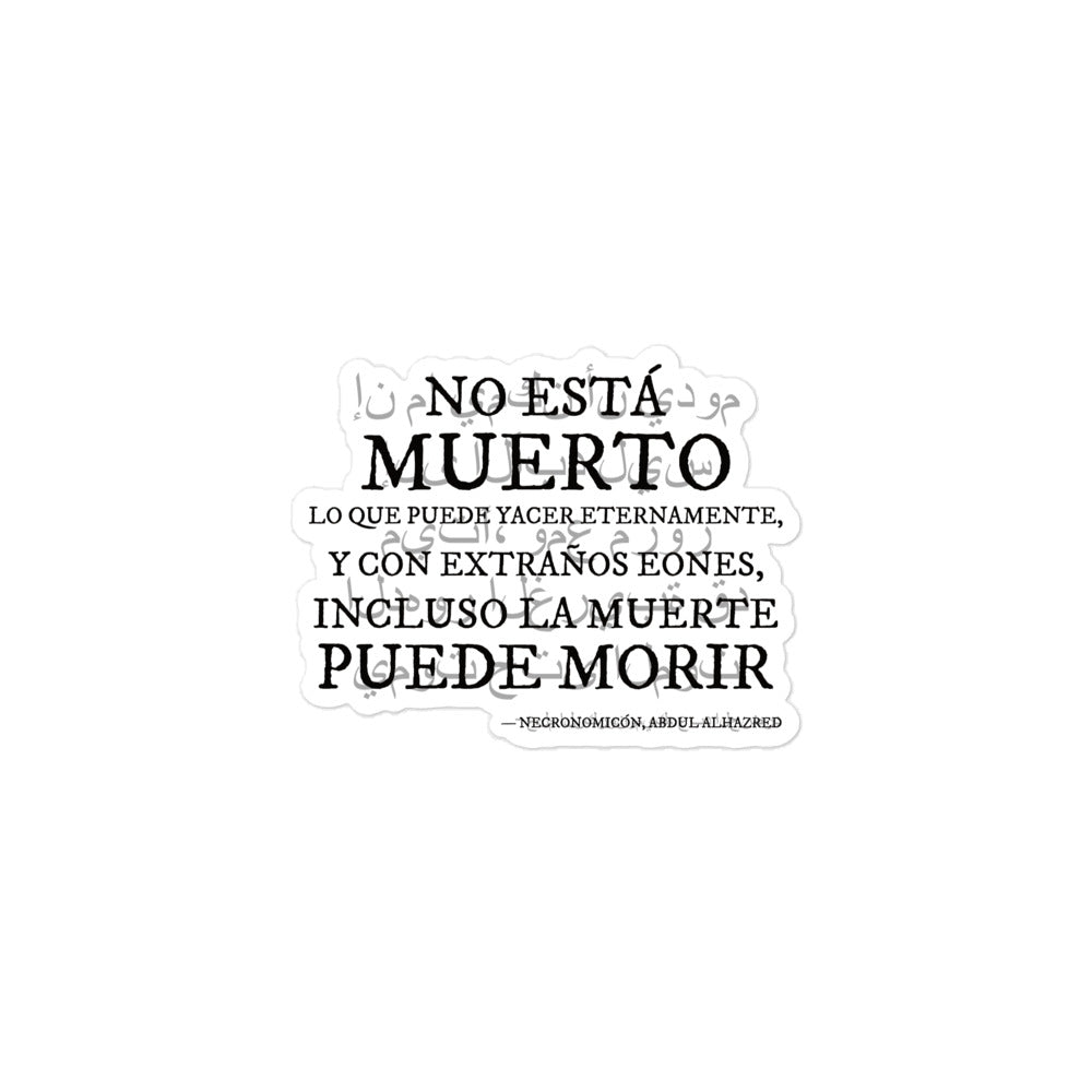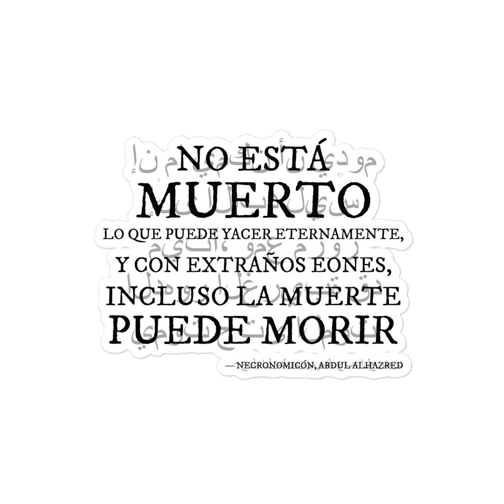 Diese Dissertation präsentiert die ikonischste Rückseite der Necronomicon auf Spanisch und geschrieben auf Arabisch: „Es gibt keine Zeit, die ewig dauern kann, und es gibt noch mehr als eine Ewigkeit, einschließlich der Toten.“ Ein Fragment des verborgenen Universums von HP Lovecraft.