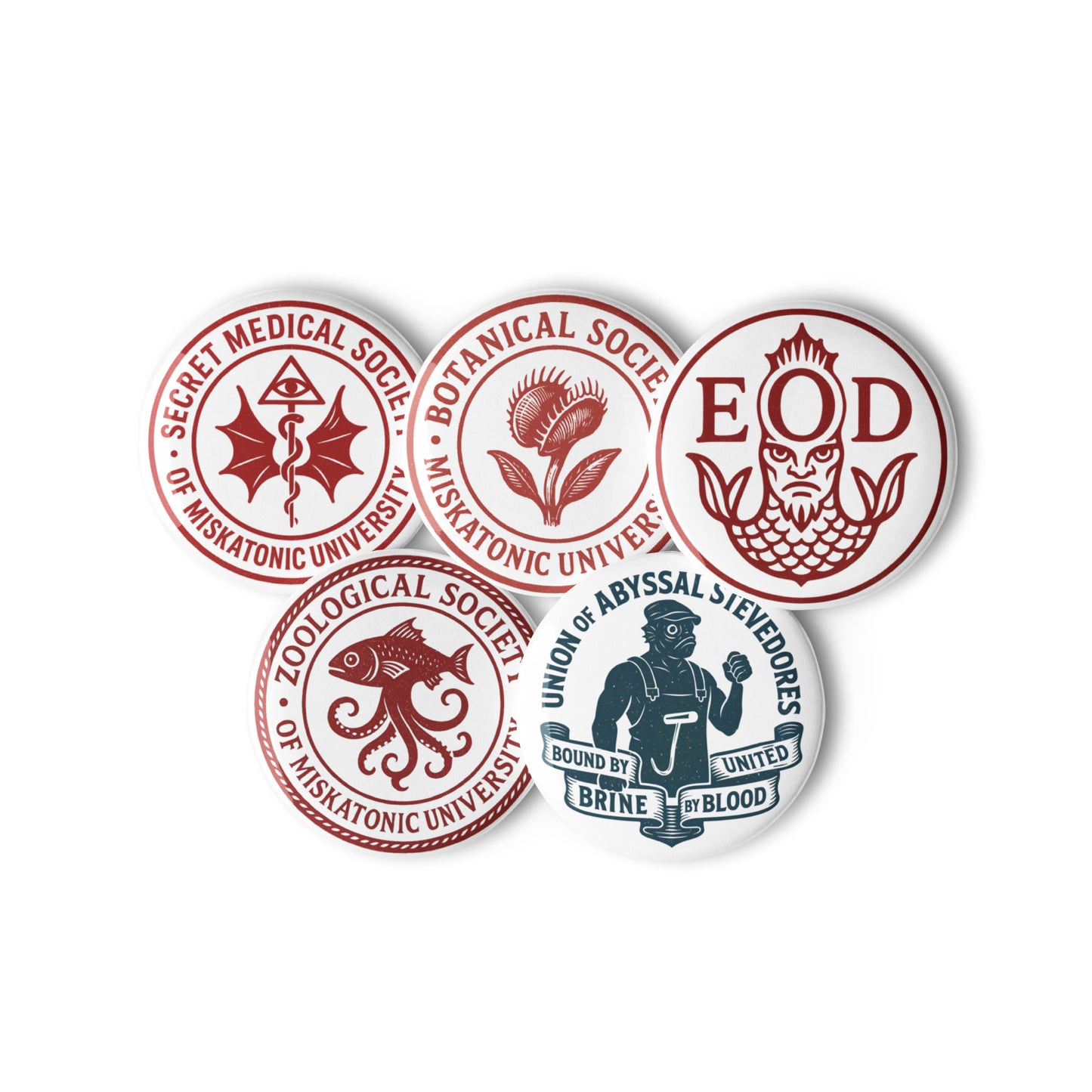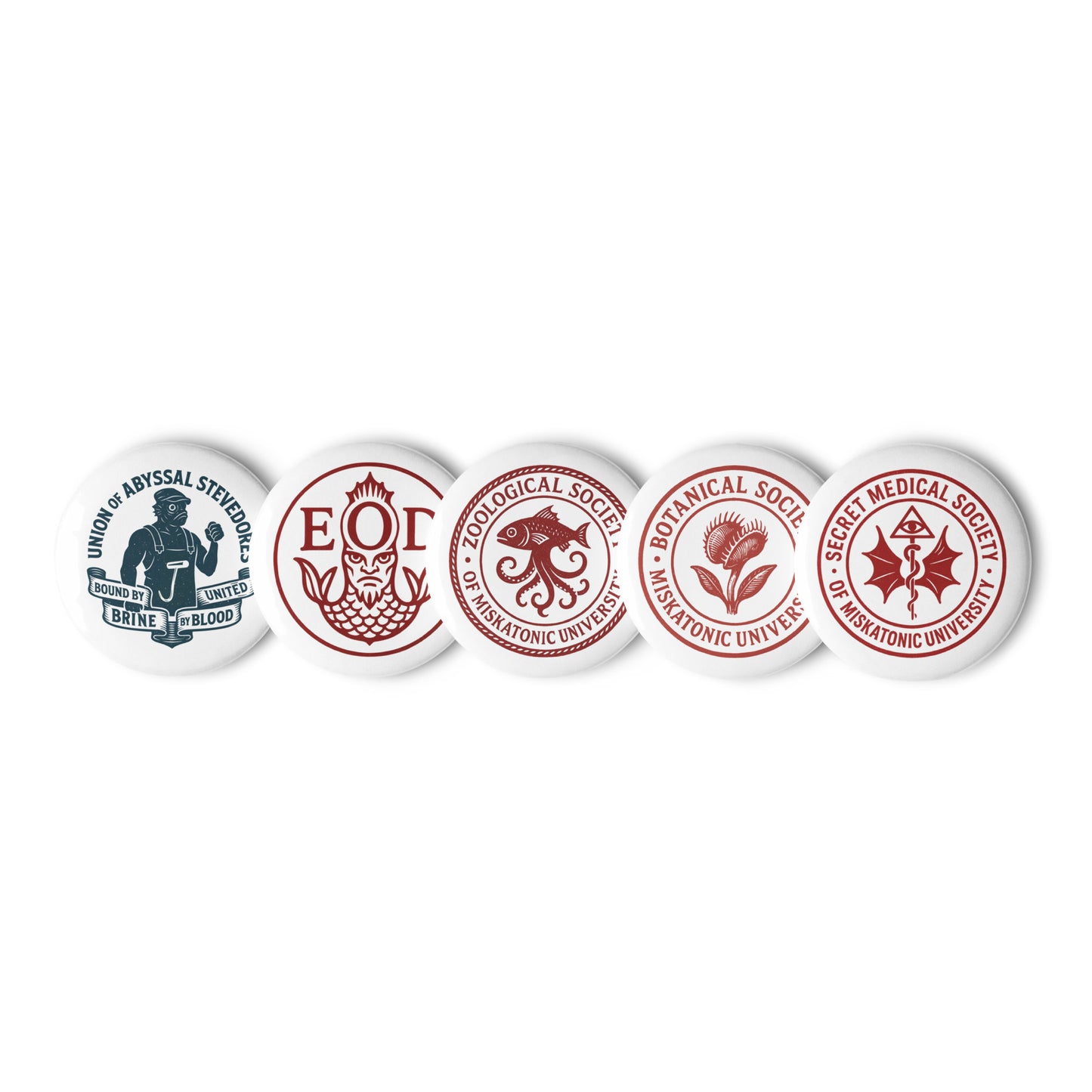 Lovecraft Innsmouth Cthulhu Miskatonic University Set of pin buttons